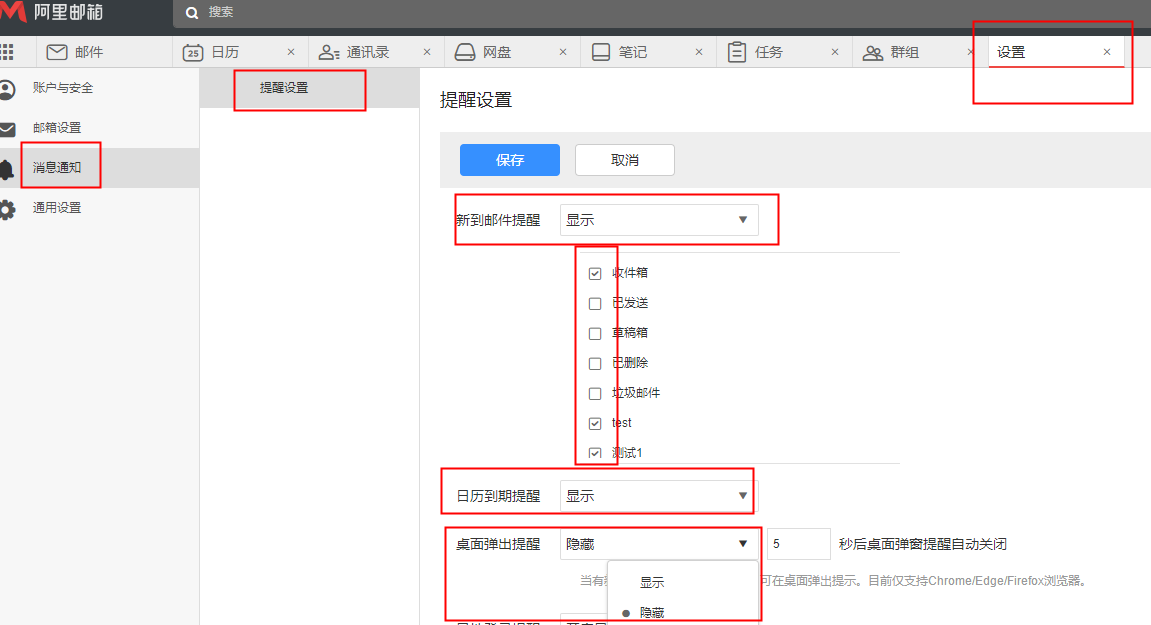 【苏州阿里邮箱】如何设置提醒?
