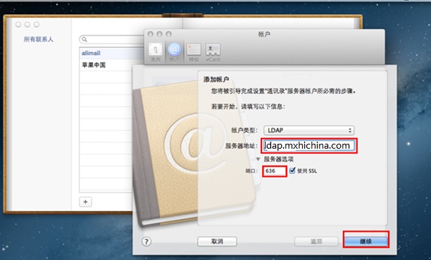 MAC OUTLOOK配置通讯录: